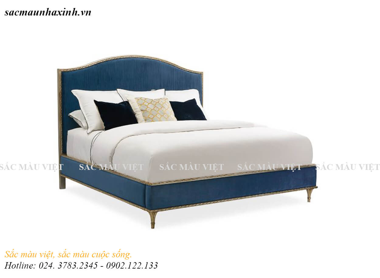 Chất liệu: Giường bọc nỉ xung quanh, cốt gỗ MDF chống ẩm , viền khung inox mạ PVD Kích thước: 2100x1900x350 Màu sắc: Theo thiết kế