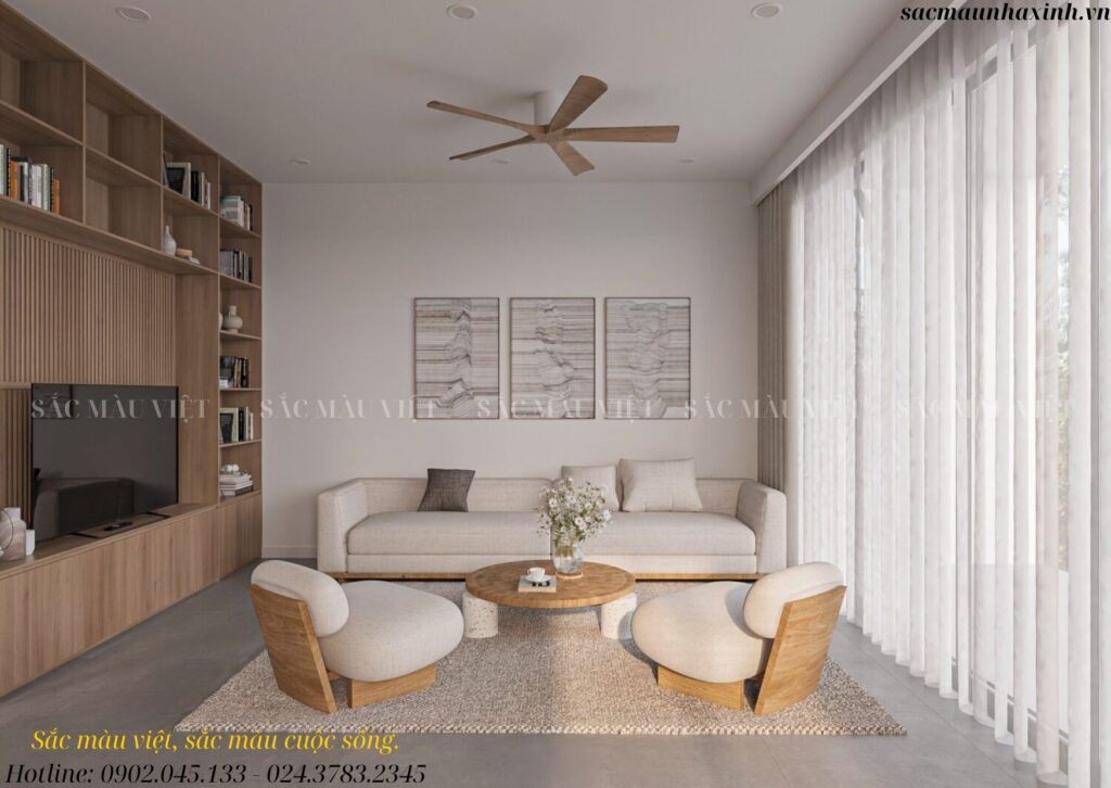 Thiết kế phòng khách phong cách Wabi Sabi.